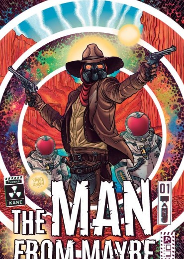 In the dry and dead future that's coming soon, all life belongs to Oppenheimer-obsessed billionaire Harvard Denny and his corporate scavengers from Smile, Inc., who pillage the wastelands in search of atomic contraband. As the race to acquire the a crashed spacecraft's cargo begins, our fate will be decided by a masked bandit and the cold iron of his laser rifle. He knows no name, no home, no surrender-only the whispered hush of those in need who dare call him . . . THE MAN FROM MAYBE! Give yourself over to an upside-down world where all mutants eat lead and all dinosaurs speak truth in the DOUBLE-SIZED, 48-PAGE debut of a postmodern, post apocalyptic epic of Western-infused action from rising star Jordan Thomas (Weird Work, XINO) and psychedelic warlord Shaky Kane (Bulletproof Coffin, The Beef) as the Man From Maybe sets his sights on THE CRATE OF DEATH!