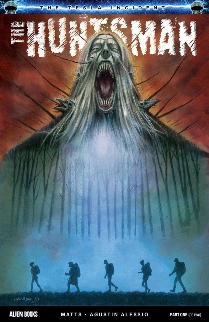 ISSUE 1 of 2. PRESTIGE FORMAT, 60 PAGES. Part of the upcoming 'The Tesla Incident' saga. In the vast wilderness of one of North America's largest parks, a group of adventurous young backpackers embarks on a journey in search of excitement and unforgettable memories. Little do they know, their path leads them into an eerie forest teeming with peculiar creatures and unsettling sights. As their escapade takes a dark turn, they find themselves trapped in a harrowing nightmare, stalked by a relentless predator known as The Huntsman. Is this monstrous entity merely a legendary apex predator akin to the enigmatic Bigfoot, or does it conceal a deeper, more sinister secret that poses a threat to the very fabric of humanity's existence?