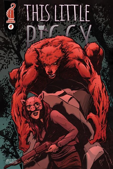 'DARK HARBOR: After stapling pig masks to their faces, Reggie has to hunt down his long-time crush and her family. Coming of age is hard when you’re a werewolf. The Hills Have Eyes by way of Ginger Snaps! In this issue, Reggie isn’t the only one whose life has changed tonight. Abigail has watched her entire family get slaughtered. And she’s finally ready to prove this little piggy has teeth. Unfortunately, another hunter slips into the fray.'