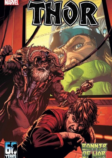 'BANNER OF WAR' PART TWO! The 60th Anniversary celebration - and Thor and Hulk's epic rivalry - continues in the second installment of the crossover between the HULK and THOR series! Banner's newfound control of his rage is prolonging this fight more than Thor expected, and with Banner holding his own, Thor must get creative. Odin's breakthrough look into Banner's psyche seems to slow the violence, but will it be enough? Additionally, new creators to the THOR title bring glimpses into the possible futures of Thor and his friends! RATED T+