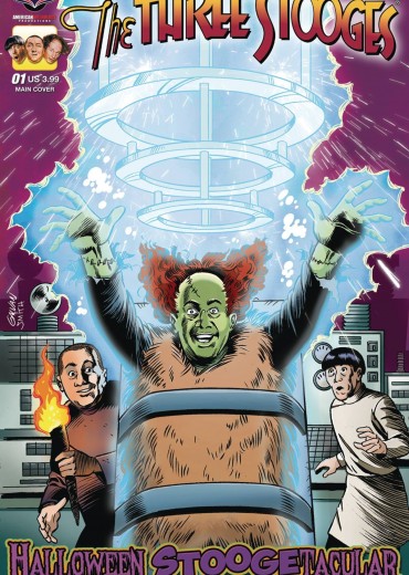 It's that time of year again and The Boys are back to scare up some stories guaranteed to make you laugh! Return to Castle Frankenstooge and other slap-happy horror tales in time for the spookiest time of year. The Three Stooges Halloween Stoogetacular delivers all the things that go nyuk, nyuk, nyuk in the night and pokes those pesky ghosts and goblins right between the eyes! Enjoy classic funnies with modern flare here with The Three Stooges. The Three Stooges Halloween Stoogetacular comes with four covers - Main by Galvan, Framed by the Fraim Brothers, Color Photo Cover, and a special Black & White Retailer Incentive Photo Cover!
