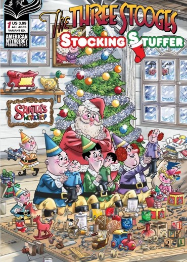 It's Christmas with The Three Stooges! The holidays are a time to enjoy with family and friends. And if your friends are knuckleheads, you know the kind of slapstick hijinks they can get up to! Join Moe, Larry, Curly, and even Shemp with tales that will fill your Christmas with chuckles and your Hanukah with hilarity! In this issue our own Stooge-tastic story tellers have The Boys as guardian angels, screwing up Santa's assembly line, and even celebrating with their first Hanukah tale! It's a Three Stooges milestone in their storied career! So, hang your stocking with care, because you never know when Shempy Claus is coming to town! The Three Stooges Stocking Stuffer is the perfect holiday gift for Dad and comes with four covers - Main by Philip Murphy, Painted Variant by Jorge Pacheco, Color Photo, and Limited Edition Black & White Photo Cover!