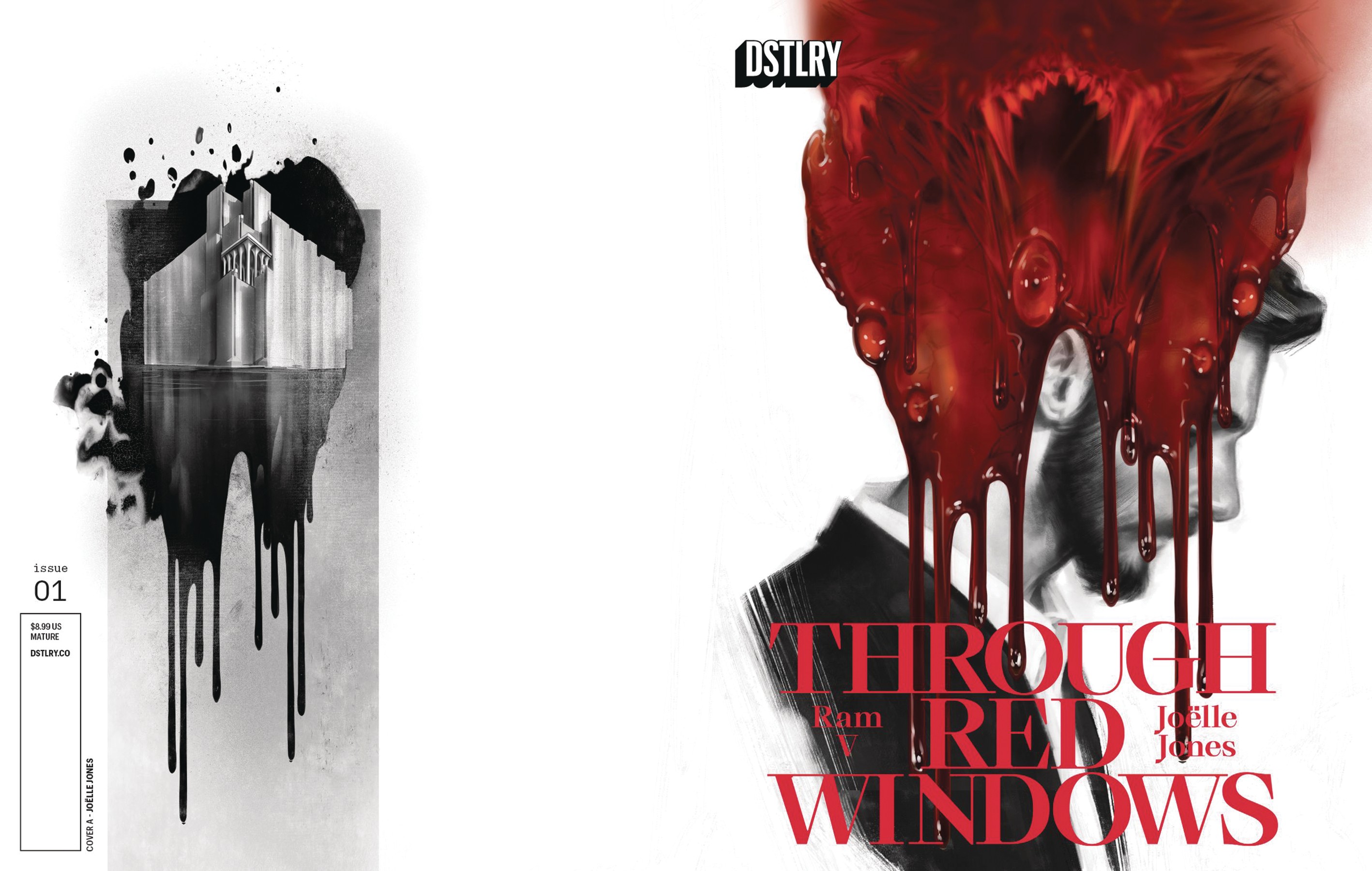 One of the hottest writers in comics, RAM V (The One Hand, The Many Deaths of Laila Starr) teams up with artist extraordinaire Joëlle Jone (Catwoman, Lady Killer) to tell a modern horror story that will leave you guessing until the bitter end! When ailing Plutocrat, Harlan Roderick, invites his young protégé Athul Laal to live at Roderick Place in downtown Manhattan, what Athul believes this to be his first step into the inner circle of the world's elite, soon turns into a living nightmare. Athul discovers that Harlan and his illness are inextricably connected to the 73-story building, in which, behind each door, lie secrets and monsters from both Harlan and Athul's own lives. Lala's ambition gets the better of him and the higher he climbs in the company (and the building!) the deeper and darker becomes the danger to his life….and maybe his soul. THROUGH RED WINDOWS is a pulse-pounding thriller loosely inspired by Edgar Allan Poe but with a very modern twist. Not for the feint of heart! Every single issue from DSTLRY is presented in our perfect bound Prestige format, featuring wraparound covers with spot gloss on robust cover stock, complemented by 48 pages of exquisite interior stock. It's the DSTLRY difference. For fans of WALL STREET, SUCCESSION, THE GAME, and CHANNEL ZERO.