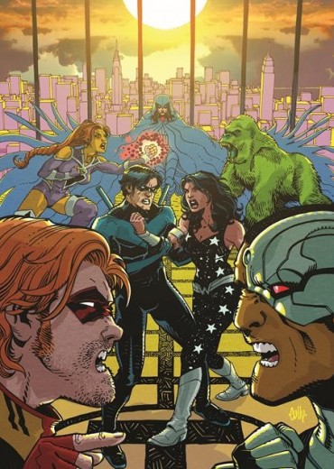 'TEMPERS FLARE! Take an overly-emotional empath and add a hearty dose of psychosis, and what do you got? A recipe for disaster! Also: A belligerent boyfriend, an enraged archer, an unsound cyborg, an agitated alien, a testy tactician, and a livid team leader. Yes, Titan tempers are running hot, but the angriest person of all, dear reader, will be you if you miss this issue!'