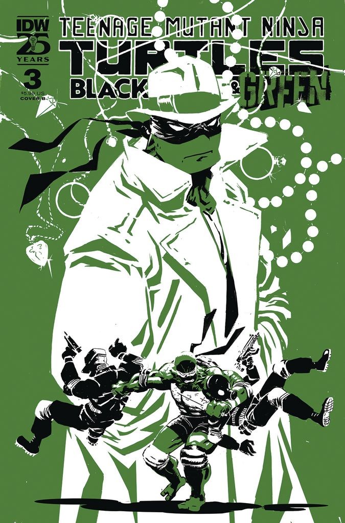 Our two-color celebration continues! Marvel at new stories featuring the TMNT in their classic black-and-white style but with a touch of green, because we like keeping it fresh that way. Joining us for this round are superstar creators Jock (Gone, Batman: One Dark Knight), Cameron Chittock (TMNT/Stranger Things), Dave Wielgosz (Man-Bat), Riley Rossmo (Harley Quinn), rock-and-roll artist Alex Ziritt, and more!