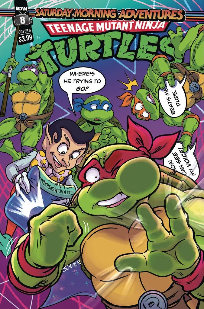Once upon a time, the Teenage Mutant Ninja Turtles encountered Mr. Ogg, a card-carrying trickster type from an alternate dimension. Now he's back and it's no more Mr. Nice Guy as Ogg charges the Turtles with a crime that they're most definitely guilty of, and Raphael is the guiltiest of all! It's an extradimensional accusation of the meta kind-with some bonus extraterrestrials to boot in the form of Wingnut and Screwloose-all in this issue of Saturday Morning Adventures!