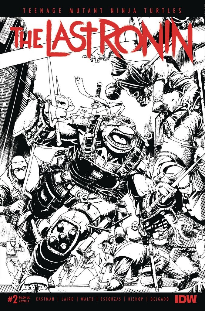 The best-selling series, now available in standard comic size with new covers, to coincide with the release of The Last Ronin II: Re-Evolution! Secrets are revealed as we begin to discover what happened in the past to lead to this nightmarish future. The Ronin meets an unexpected new ally but the Foot Clan begins an exhaustive sweep of the Bottom to find the vengeful mutant.