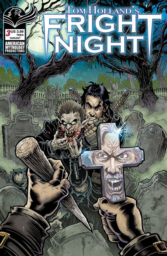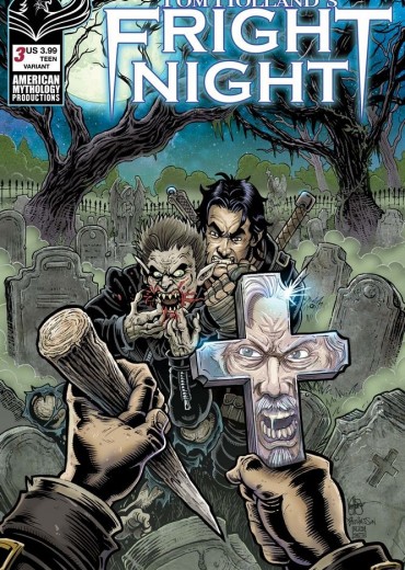 The official continuation of Tom Holland's amazing screenplay takes a monster sized bite out of normal horror comics. Fright Night's mix of horror, humor, and heart is unique among the titans of the genre. In this issue the band of would-be vampire killers finds an unlikely alley among the growing vampire population in town. Can the return of everyone's favorite 'Evil' character turn the tide in the bloodbath? This issue comes with four covers - Main by Roy Allan Martinez, Throwback by Neil Vokes, Lil' Vampire Hunters by Buz Hasson & Ken Haeser, and a limited edition also featuring the stark Black & White art of Roy Allan Martinez!