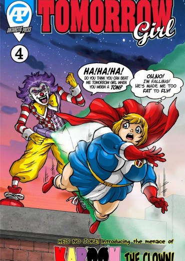 SUPERVERSE TITLE! KILLER CLOWN! AMERICAN MANGA SUPERHERO! Abandoned and fired by his fast-food company bosses, ex-pop culture celebrity Kaboom the Clown has taken to crime and is serving up a huge helping of mayhem. With all the heroes taken out by Kaboom's special brand of food poisoning,it's up to Tomorrow Girl to save the day!