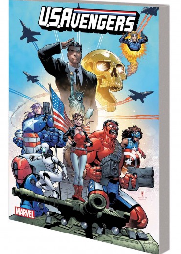 In a world beset by danger, the United States of America needs heroes they can rely on. Welcome to�American Intelligence Mechanics! A.I.M. will protect the nation from the wildest, weirdest threats of all! And the most patriotic super-group ever will do it all while looking tried and true in the red, white and blue! Can you live without�the U.S.Avengers? But when the Golden Skull launches his takeover bid, how will the team respond to the looming threat? With tuxedos. Really well-fitted tuxedos. It's socialism gone wild as the U.S.Avengers literally punch the business leaders of tomorrow right in their faces! Plus: Monsters galore - including Red Hulk! American Kaiju! Vandoom! And, would you believe, Dedd-Puul, the Mercenary That Walks Like a Man?! But when Steve Rogers gets serious, so must A.I.M. Where does that leave Roberto Da Costa? Collecting U.S.AVENGERS #1-5. Rated T+