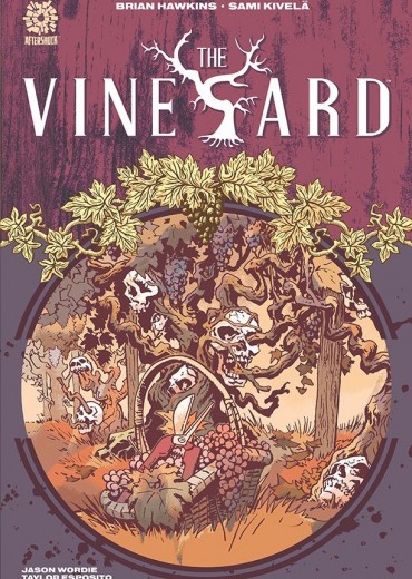 THE VINEYARD is a family-owned winery that sows and reaps by the blessing of the great god of wine and revelry, Dionysus. However, the Vines family's patron god requires complete devotion in the form of four sacrificial killings a year before each harvest. This has been done in unfettered obeisance. But all of that changed when the family's patriarch, Didache Vines, was in a horrible accident that left him paralyzed and in a wheelchair. Now, the sacrificial and murderous duties of the Vines family have fallen to wife and matriarch, Maranatha Vines. With harvest season fast approaching and the family short of their annual sacrificial killings, Maranatha's struggle with her conscience puts all of her family - husband, son and daughter - in jeopardy. Written by Brian Hawkins (Black Cotton, Believe in the Name, Don't Ever Blink) and illustrated by Sami Kivelä (THE HEATHENS, UNDONE BY BLOOD, Abbott), THE VINEYARD is what happens when family values and otherworldly obligations collide. This 104-page volume contains the entire series, issues #1-4.