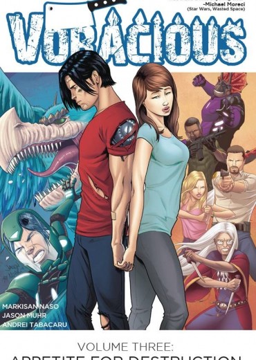 Chef Nate Willner's dinosaur hunts in an alternate dimension reignited his passion for cooking and turned his life around. But traveling through time and space for prehistoric meat has consequences he never imagined. He's damaged the bloodlines of the Saurians, a race of evolved dinosaurs from another universe, fractured the trust of the people he cares for most, and unleashed a flesh-hungry monster on his hometown! With the help of Saurian Detective Gus Horncrasher, Nate and his friends must put aside their differences to save Blackfossil from being devoured, repair the damage to the timelines, and overcome the losses they've suffered in their lives. Collects issues #1-5.