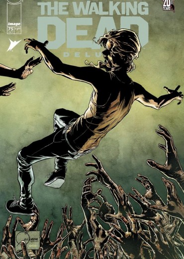 'THE WALKING DEAD DELUXE CELEBRATES 75 ISSUES! A domestic dispute forces Rick to intervene, revealing to the entire town he still carries his gun, a direct violation of the laws of Alexandria.'