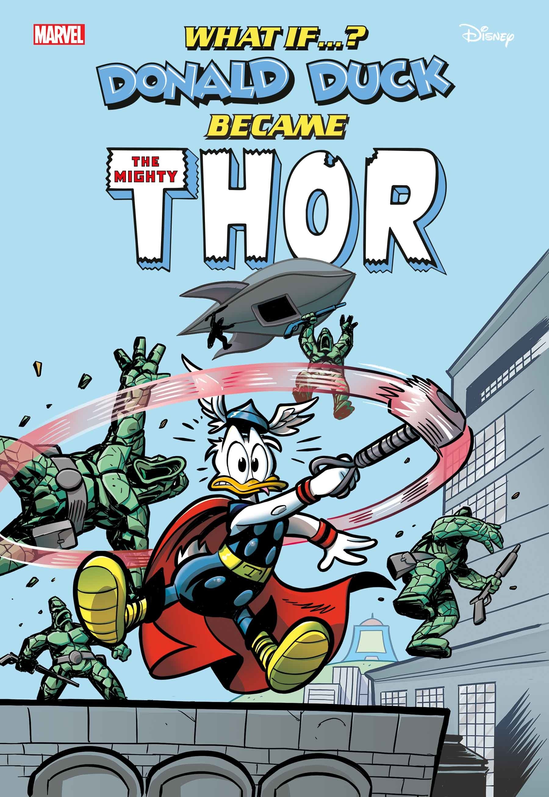 IS THIS FOWL WORTHY OF THE HAMMER OF THOR?! When DONALD DUCK chaperones HUEY, DEWEY AND LOUIE on an archaeological trip to search for ancient Viking artifacts, he finds more than he bargained for when he comes across the STONE DUCKS FROM SATURN preparing for an invasion. But everything changes when he discovers an enchanted cane that causes an egg-ceptional transformation, gifting him with the POWER OF THOR! Can he learn how to use his new abilities in time to save DUCKBURG before he changes back? Find out in this mind-twisting retelling of THE MIGHTY THOR'S THUNDEROUS ORIGIN! Kids to Adults