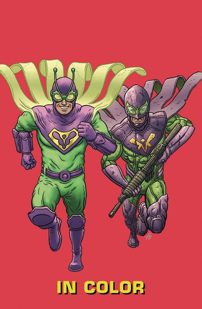 AHOY's acclaimed multiverse comic returns for a new five-issue run by the original creative team! Dragonflyman and Stinger are back where they belong, on campy Earth-Alpha-but Earth-Omega's gritty Dragonfly and Stinger II are now trapped there too. Will their vigilante violence infect the planet's innocent, code-approved culture? And what happens when two heroes want to share Dragonflyman's civilian identity, billionaire Richard Fame? The agonizing answers will shake Fortune City to its foundations!