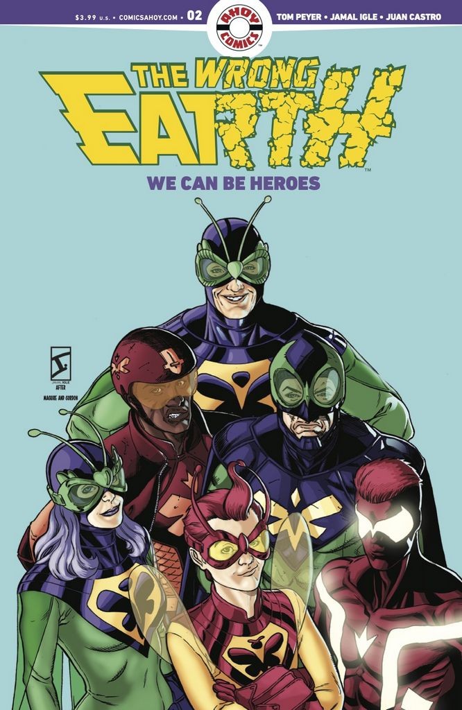 Masked crimefighters from three worlds wage a war to wrest control of campy Earth-Alpha from its cackling, mustache-twirling villains! This AHOY anniversary epic offers thrills and laughs of its own as it resets the Wrong Earth chessboard for the next series. Plus, a new chapter of 'Partially Naked Came the Corpse,' AHOY's 5th anniversary prose serial!