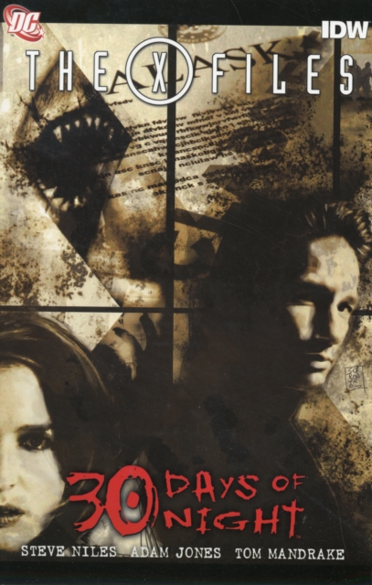 Collects X-Files/30 Days of Night (2010 DC/IDW) #1-6. Written by STEVE NILES and ADAM JONES. Art by TOM MANDRAKE. Cover by ANDREA SORRENTINO. Two of the most popular horror properties of the last two decades collide in this harrowing six-issue adventure of epic proportions. When evidence of a cannibal killer in Alaska draws the attention of the FBI, Mulder and Scully draw the less-than-glamorous assignment. But all is not as it seems. Not only has the long seasonal darkness begun to fall, but there's something unnatural going on. And how is a chilling, mysterious black ship connected to the murders? Co-published with IDW Publishing. Softcover, 144 pages, full color. Cover price $17.99.