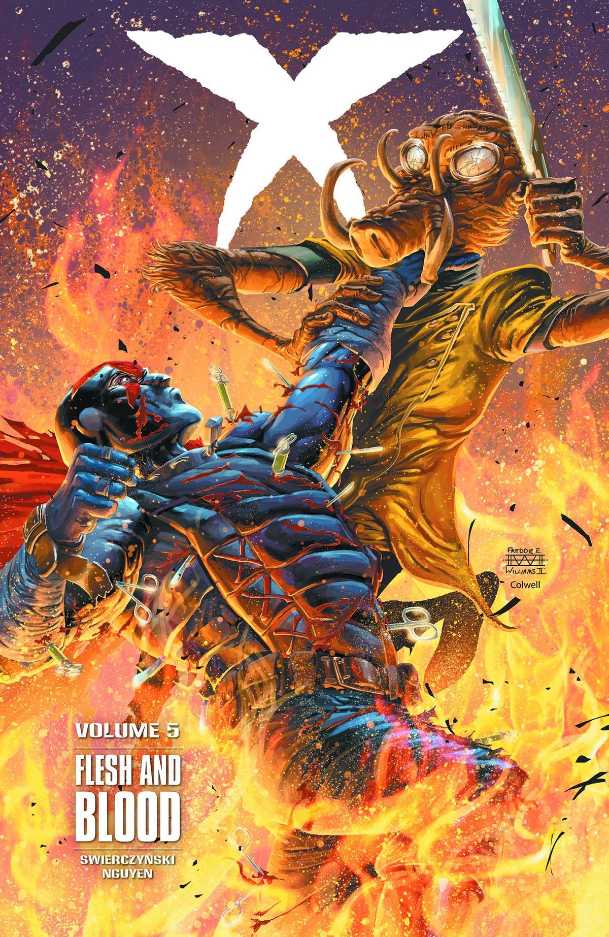 When Leigh learns an old friend has fallen victim to the Skin Traders-surgically modified thugs who skin their abductees-she knows that only X can face their demented plastic-surgeon leader! Swords meet scalpels in a hospital showdown! Collects issues #17-#20.