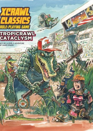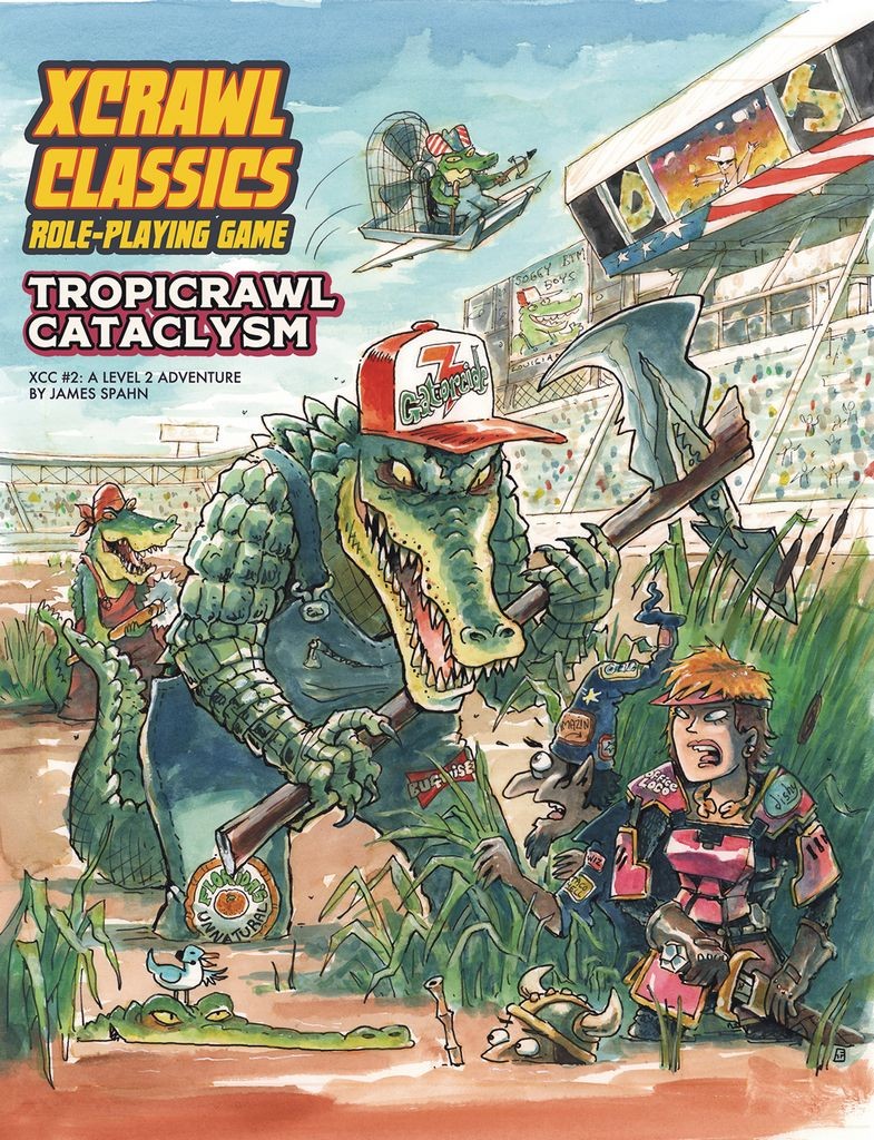It's a rumble in the jungle as DJ Flexxx brings the heat with this year's Miami Tropicrawl! Fabulous prizes and certain death await anyone foolish enough to enter the arena to face insane gatormen astride turbo-powered jet skis, exploding volcanic caverns, and amazing cash prizes. XCC #2: Tropicrawl Cataclysm is a 2nd level adventure perfect for continuing your players' rise to Xtreme Dungeon Crawling superstardom. Can they survive against the dreaded Lizard King and his Skunk Ape servants? One thing's for sure: this ain't no Spring Break!