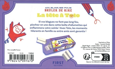 Si vos blagues ne font pas long feu, piochez-en une dans cette boîte d'allumettes qui enflammera votre soirée ! Avec Toto, les moments hilarants en famille ou entre amis sont garantis !