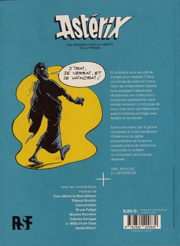 Et si Astérix nous servait de modèle pour résister ? Dans un monde de moins en moins riant, les irréductibles Gaulois nous engagent depuis plus de soixante ans à dire non à toutes les oppressions, sans jamais renoncer à notre joie de vivre. Une vision que Reporters sans frontières partage avec Astérix et sa bande. Entre vos mains, par la grâce combinée du trait bondissant d'Uderzo et du génie scénaristique de Goscinny, ce petit précis de résistance nous invite à revisiter un monument de la bande dessinée. Une affiche à l'intérieur.