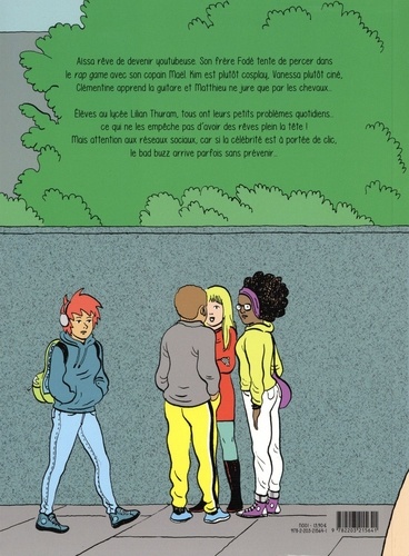 Futurs rappeurs, Fodé et Maël sont plus à l'aise avec les mots qu'avec l'algorithme de YouTube... jusqu'à ce qu'un mystérieux poing vert, présent sur un mur en arrière-plan de leur vidéo, se retrouve taggé sur la façade du lycée. La théorie du complot s'installe... Quant à Aïssa, Julie et certaines de leurs camarades, c'est à un autre genre de buzz qu'elles doivent faire face : quelqu'un les a photographiées aux toilettes et a mis en ligne les images. Le site a été fermé, mais les photos ont eu le temps de circuler... et de susciter des réactions. Dessinées à hauteur d'ados, les deux histoires de ce livre posent des questions d'aujourd'hui : qu'est-ce que la popularité ? Où commence le harcèlement ? Comment se met en place la mécanique du complotisme ? Et surtout : y a-t-il une recette miracle pour faire un maximum de vues sur YouTube ?
