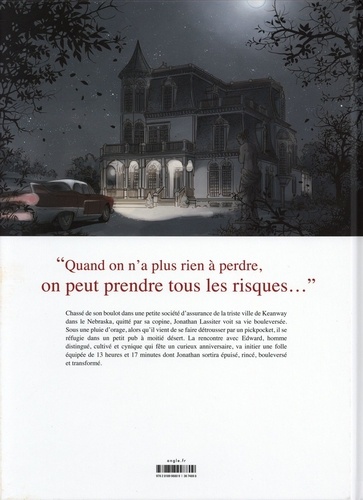 "Quand on n'a plus rien à perdre, on peut prendre tous les risques... Chassé de son boulot dans une petite société d'assurance de la triste ville de Keanway dans le Nebraska, quitté par sa copine, Jonathan Lassiter voit sa vie bouleversée. Sous une pluie d'orage, alors qu'il vient de se faire détrousser par un pickpocket, il se réfugie dans un petit pub à moitié désert. La rencontre avec Edward, homme distingué, cultivé et cynique qui fête un curieux anniversaire, va initier une folle équipée de 13 heures et 17 minutes dont Jonathan sortira épuisé, rincé, bouleversé et transformé.