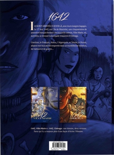 1942. Ils sont arrivés ce jour-là, avec leurs maigres bagages. Le 17 mai 1642, sur l'île de Montréal, une cinquantaine de pionniers français fondent une nouvelle colonie, Ville-Marie, où, autrefois, se dressait la bourgade iroquoise d'Osheaga. Gauthier, le Français, Askou, l'Algonquin, et Tekola, le Huron, allaient voir leur amitié emportée dans un tourbillon de violence, de trahison et de guerre...