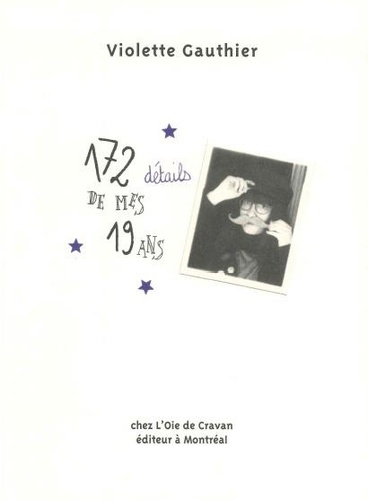 "172 détails de mes 19 ans" est un livre d'images, un mille-feuille de ce qui peut animer, toucher, bousculer une jeune femme de 19 ans : de la joie, des désaccords, du désir, des chewing-gums, de la peur et de la musique. Ce sont des dessins légèrement bleutés où se confondent mots et images pour former ce qu'il y a de plus mystérieux : des poèmes.