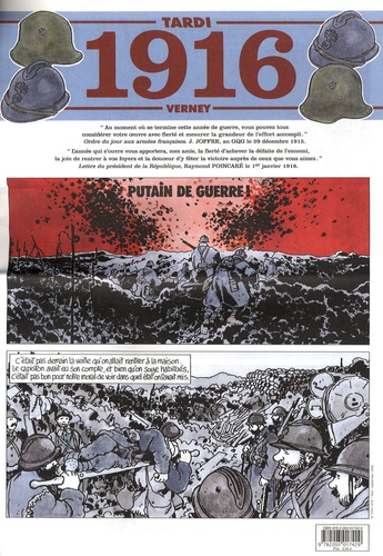 Tardi renoue avec la mémoire de 14-18 à travers un ambitieux projet : une évocation en bande dessinée du premier conflit mondial, et de la place qu'y ont occupée, au quotidien, les hommes qui s'y sont affrontés et entretués. Un récit de fiction, mais où le souci de véracité et la rigueur de la reconstitution historique occupent une place primordiale. Ce nouveau projet, dans la forme, reprend le découpage en 3 strips par page déjà utilisé dans l'album C'était la guerre des tranchées. Le récit débute en couleurs, mais, au fil de sa progression chronologique, et à mesure que la guerre s'enkyste, s'étend et s'approfondit, adopte les tonalités de plus en plus monochromes de la boue et de la grisaille. Avant d'être proposé en librairie en album, fin octobre, ce nouveau grand récit de Tardi fait l'objet d'une publication sous la forme d'un journal grand format, à raison de trois numéros de vingt pages chacun. Chaque numéro du journal, centré par ordre chronologique sur l'une des années de la période 1914-1916, comporte d'une part quinze pages de bande dessinée et d'autre part cinq pages de textes et d'articles, consacrés à l'actualité non-militaire de la période. L'ensemble de ces textes, illustrés par Tardi, est signé de l'historien Jean-Pierre Verney, qui assure depuis des années, aux côtés du dessinateur, le travail de documentation historique auquel s'adossent l'ensemble de ses albums portant sur la Grande Guerre.