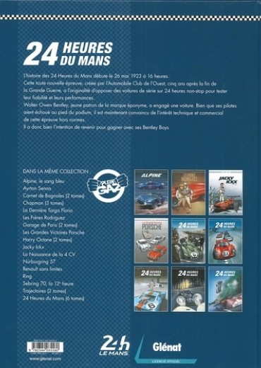 La naissance d'une légende L'histoire des 24 heures du Mans début le 26 mai 1923 à 16 heures. Cette toute nouvelle épreuve est créée par l'Automobile Club de l'Ouest quatre ans après la fin de la Grande Guerre. Si celle-ci reste encore confidentielle, elle attire des compétiteurs étrangers, comme l'Anglais Bentley. Pour cette première édition, il ne finira que quatrième, mais totalement séduit par l'exercice. Les années suivantes, les " Bentley Boys " - groupe de gentlemen drivers fortunés - reviendront pour écrire le mythe de la compétition en même temps que l'histoire du sport automobile. Ce nouvel épisode des 24 Heures du Mans en BD vous replonge aux sources de la célèbre course d'endurance !