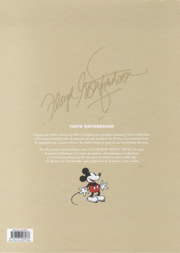 Les meilleures histoires du plus grand dessinateur de Mickey Cette luxueuse collection réunit une compilation des meilleures aventures de Mickey, scénarisées et dessinées par le grand Floyd Gottfredson. Cet auteur, équivalent de Carl Barks pour le monde des canards, est celui qui a hissé le "standard character" Mickey au faîte de sa popularité en bande dessinée, en parallèle de sa carrière dans l'univers du dessin animé. Son trait rond et efficace a conduit ce personnage emblématique dans tous les coins du monde et à travers toutes les époques ! Cette compilation inédite des strips de Gottfredson comptera douze tomes et réunira de manière chronologique les histoires de l'âge d'or de Mickey : 1936 à 1955.
