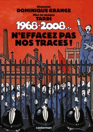 L'anniversaire des 40 ans de Mai 68 ne manquera pas d'être célébré par la sortie de multiples ouvrages, films, enregistrements, etc... qui participent de la mémoire de ces quelques semaines où un véritable élan révolutionnaire a suscité, avec la plus grande grève de l'histoire du mouvement ouvrier, une profonde remise en question de la société française. Le nouvel album de Dominique Grange "1968-2008... N'effacez pas nos traces ! ", trouve son unité et sa cohérence dans les thèmes qui ont inspiré cette auteure-compositeure tout au long des quarante années écoulées depuis Mai 68 : les luttes sociales, le racisme, la misère, les inégalités, la prison, l'exil, l'émancipation des peuples, l'utopie révolutionnaire... Les chansons de Mai 68 écrites et composées alors par Dominique Grange, s'inscrivent dans cet héritage historique d'expression contestataire. Enregistrées sur de nouveaux arrangements, avec un certain nombre de titres nouveaux, elles ont inspiré Tardi, qui en a fait une mise en images superbe, un exceptionnel travail de dessin à la gouache, dans un recueil de 80 pages, contenant également le CD de Dominique, à paraître chez Casterman à la mi-avril 2008. Avec la même énergie, la même conviction qu'on ne peut qu'être engagé dans son siècle, en 2008 comme en Mai 68 où, armée de sa guitare, elle chantait dans les usines occupées en soutien aux ouvriers en grève, Dominique Grange reste une chanteuse engagée. . ". à perpétuité", dit-elle ! Et le pinceau de Tardi dessinant une époque qui continue d'interroger par l'espoir qu'elle a suscité, plonge dans l'univers de ces 15 chansons, nous offrant des images à couper le souffle, où se mêlent tour à tour émotion et tendresse, cruauté et violence... Une double lecture de cet ouvrage s'impose donc au lecteurqui aura la tâche d'écouter les chansons du CD de Dominique Grange le regard rivé sur les dessins de Tardi !