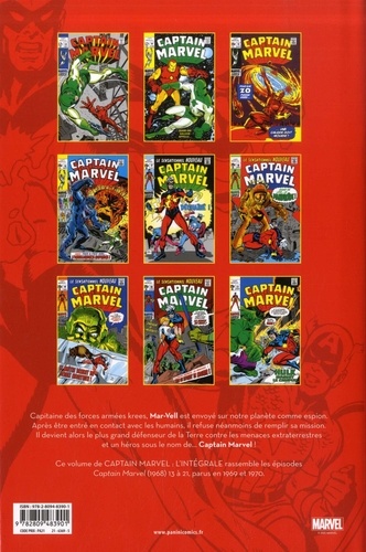 Capitaine des forces armées krees, Mar-Vell est envoyé sur notre planète comme espion. Après être entré en contact avec les humains, il refuse néanmoins de remplir sa mission. Il devient alors le plus grand défenseur de la Terre contre les menaces extraterrestres et un héros sous le nem de... Captain Marvel ! Ce volume de CAPTAIN MARVEL : L'INTEGRALE rassemble les épisodes Captain Marvel (1968) 13 à 21, parus en 1969 et 1970.