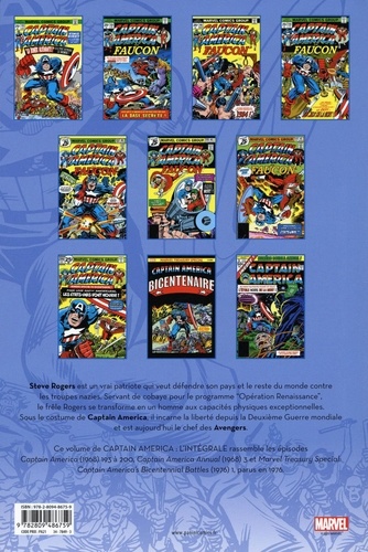 Steve Rogers est un vrai patriote qui veut défendre son pays et le reste du monde contre les troupes nazies. Servant de cobaye pour le programme "Opération Renaissance", le frêle Rogers se transforme en un homme aux capacités physiques exceptionnelles. Sous le costume de Captain America, il incarne la liberté depuis la Deuxième Guerre mondiale et est aujourd'hui le chef des Avengers. Ce volume de Captain America l'intégrale rassemble les épisodes Captain America (1068119.3 q 200, Captain America Annual 11968) 3 et Marvel Treasury Spezia' : Captain America's Bicentennial Baffles (1076)1, parus en 1976.