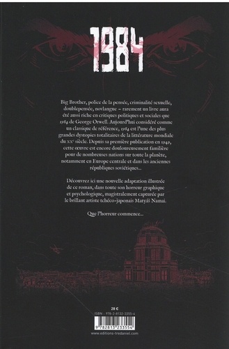 Big Brother, police de la pensée, criminalité sexuelle, doublepensée, novlangue - rarement un livre aura été aussi riche en critiques politiques et sociales que 1984 de George Orwell. Aujourd'hui considéré comme un classique de référence, 1984 est l'une des plus grandes dystopies totalitaires de la littérature mondiale du XXe siècle. Depuis sa premiere publication en 1949, cette oeuvre est encore douloureusement familière pour de nombreuses nations sur toute la planète, notamment en Europe centrale et dans les anciennes républiques soviétiques... Découvrez ici une nouvelle adaptation illustrée de ce roman, dans toute son horreur graphique et psychologique, magistralement capturée par le brillant artiste tchéco-japonais Matyás Namai. Que l'horreur commence...