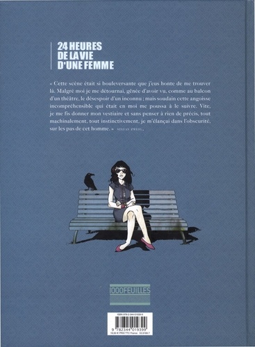 "Cette scène était si bouleversante que j'eus honte de me trouver là. Malgré moi je me détournai, gênée d'avoir vu, comme au balcon d'un théâtre, le désespoir d'un inconnu ; mais soudain cette angoisse incompréhensible qui était en moi me poussa à le suivre. Vite, je me fis donner mon vestiaire et sans penser à rien de précis, tout machinalement, tout instinctivement, je m'élançai dans l'obscurité, sur les pas de cet homme." Stefan Zweig.