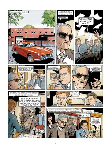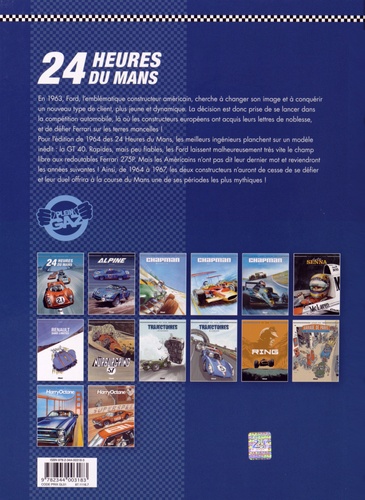 Revivez en BD les grands moments de la plus célèbre des courses d'endurance ! En 1963, Ford, l'emblématique constructeur américain, cherche à changer son image et à conquérir un nouveau type de client, plus jeune et dynamique. La décision est donc prise de se lancer dans la compétition automobile, là où les constructeurs européens ont acquis leurs lettres de noblesse, et de défier Ferrari sur les terres mancelles ! Pour l'édition de 1964 des 24 Heures du Mans, les meilleurs ingénieurs planchent sur un modèle inédit : la GT 40. Rapides, mais peu fiables, les Ford laissent malheureusement très vite le champ libre aux redoutables Ferrari 275P. Mais les Américains n'ont pas dit leur dernier mot et reviendront les années suivantes ! Ainsi, de 1964 à 1967, les deux constructeurs n'auront de cesse de se défier et leur duel offrira à la course du Mans une de ses époques les plus mythiques ! Après Chapman, Alpine et Ayrton Senna, la collection Plein Gaz inaugure une nouvelle série consacrée aux 24 Heures du Mans !