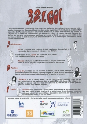 Dans ce premier tome, notre bande d'aventuriers est confrontée à un puissant personnage qui enlève tous les troupeaux des Causses et Cévennes dans un but mystérieux. Du Mont Lozère, en passant par les pentes de l'Aigoual, les Causses Sauveterre, de Blandas, le cirque de Navacelles, les villages de Meyrueis, la Couvertoirade, Saint-Guilhem du Désert et Roquefort, Lia, Nicolas, Ayoub et Garenne vont déjouer les plans de ce personnage maléfique, et rendre la liberté aux vaches, aux brebis et aux chèvres. Au cours de cette aventure, ils rencontrent la faune et la flore typiques de la région, sur les sentiers de randonnée. Lia est une jeune ado, curieuse de tout, passionnée de grand air et de randonnée, d'environnement, intéressée par l'histoire. Grand copain de Lia, Ayoub est l'extraverti de la bande. Très sociable mais aussi un peu gaffeur. Nicolas est un peu plus timide et réservé, il est plus cérébral et intello. C'est un garçon courageux et un vrai ami au grand coeur. L'oncle Syl, incollable sur les chemins de rondos, sur la bonne direction à prendre et toujours d'excellents conseils en cas de problème, il n'est pas toujours avec le petit groupe, mais c'est toujours lui qu'on appelle au secours ! Tata'Youb, c'est la tante d'Ayoub. Elle ne rendorme pas beaucoup, mais elle est débrouillarde et n'a pas sa langue dans sa poche. Elle est toujours prête à trouver une solution en cas de problème. C'est chez elle que la petite troupe se réunit après les grandes balades pour le repas de fête ! Garenne est le compagnon a quatre pattes, même s'il est le plus souvent juché sur ses deux pattes arrière. Il permet a la petite troupe de nombreuses rencontres animales qui donnent souvent lieu à des scènes comiques, car Garenne est un lapin télépathe mais il ne sait pas parler.