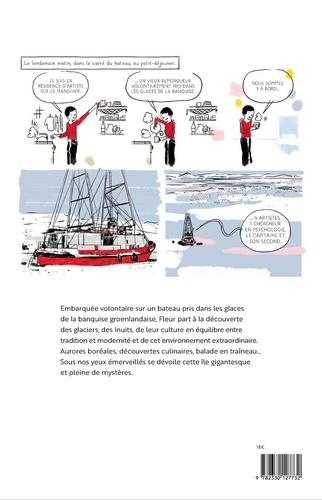 Piégée dans les glaces de la plus grande île du monde, Fleur Daugey nous invite à la découverte du Groenland, dans cette superbe BD- documentaire illustrée par le talentueux Stéphane Kiehl. Fleur s'est embarquée sur le "Manguier" pour une résidence d'artiste. Le remorqueur volontairement pris dans les glaces de la banquise, l'équipage part à la découverte de cette gigantesque île et de ses habitants. L'auteure nous emmène avec elle pour comprendre les glaciers, les Inuits, une culture et un environnement extraordinaires, entre tradition et modernité. Des voyages en motoneige sous l'aurore boréale aux discussions triviales avec les autochtones, se déroule alors sous nos yeux ébahis cette île gigantesque pleine de mystères.