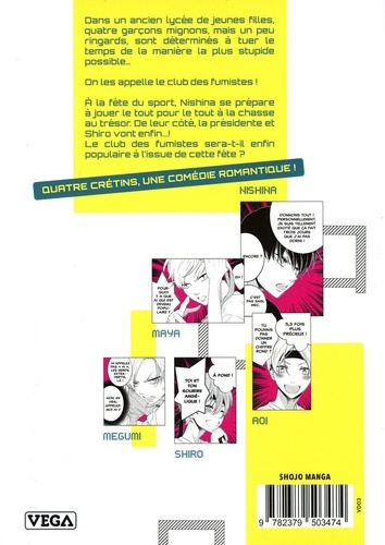 Dans un ancien lycée de jeunes filles, quatre garçons mignons, mais un peu ringards, sont déterminés à tuer le temps de la manière la plus stupide possible... On les appelle le club des fumistes ! A la fête du sport, Nishina se prépare à jouer le tout pour le tout à la chasse au trésor. De leur côté, la présidente et Shiro vont enfin...! Le club des fumistes sera-t-il enfin populaire à l'issue de cette fête ?