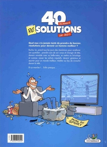 Quel mec n'a jamais tenté de prendre de bonnes résolutions pour devenir un homme meilleur ? Buche, lui, prend quotidiennement des résolutions pour améliorer son quotidien : prendre soin de son corps et changer de tête, devenir aimable avec sa belle-mère, se mettre au bricolage et faire les devoirs avec ses enfants, cesser les achats impulsifs, devenir généreux et oeuvrer pour un monde meilleur, méditer au lieu de s'avachir devant la télé… Et ça marche !… Enfin presque…