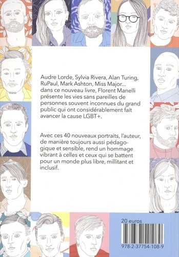 Craig Rodwell, Silvia Rivera, Tom of Finland, Armistead Maupin, Nik Sheehan ou Audre Lorde, des noms pour certains inconnus du grand public mais qui ont considérablement fait avancer la cause LGBT+ et permis lacquisition de nouveaux droits au fil de lhistoire. Florent Manelli a dessiné 40 portraits dactivistes, de personnalités, de personnes célèbres ou inconnues, qui, à leur échelle, font ou ont fait avancer le mouvement LGBT+. Pédagogique, instructif, sensible, cet ouvrage aura, à plusieurs égards, le mérite de faire sa part au sein des différentes luttes LGBT+, de rendre hommage, de se souvenir de ces personnes qui ont tracé ce chemin mais aussi de ce quil reste à parcourir. Ce livre met en lumière celles et ceux qui se sont battus et qui se battent, chaque jour pour créer un monde plus inclusif et solidaire.