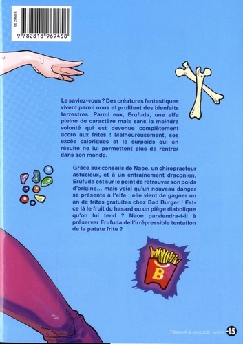 La rencontre succulente de la fantasy... et des frites ! Une elfe accro aux frites, une sirène aux bras flasques, une louve-garou qui a tendance à l'empattement, une ogresse portée sur la bière... C'est désormais officiel : des créatures d'un autre monde vivent parmi nous et elles sont toutes confrontées aux grands maux de notre société, à savoir l'abondance de calories et le manque d'exercice ! Elles peuvent néanmoins compter sur les bons soins de Naoe, un chiropracteur qui devra avoir les nerfs bien accrochés pour supporter des patientes aussi déjantées. Et lui aussi devra être patient, car voici que de nouveaux personnages fantastiques hauts en couleur font leur apparition...