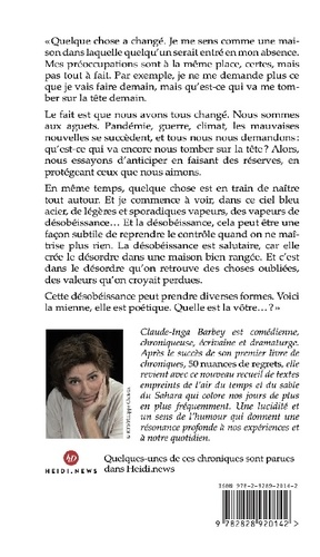 Quelque chose a changé. Je me sens comme une maison dans laquelle quelqu'un serait entré en mon absence. Mes préoccupations sont à la même place, certes, mais pas tout à fait. Par exemple, je ne me demande plus ce que je vais faire demain, mais qu'est-ce qui va me tomber sur la tête demain. Le fait est que nous avons tous changé. Nous sommes aux aguets. Pandémie, guerre, climat, les mauvaises nouvelles se succèdent, et tous nous nous demandons : qu'est-ce qui va encore nous tomber sur la tête ? Alors, nous essayons d'anticiper en faisant des réserves, en protégeant ceux que nous aimons. En même temps, quelque chose est en train de naître tout autour. Et je commence à voir, dans ce ciel bleu acier, de légères et sporadiques vapeurs, des vapeurs de désobéissance... Et la désobéissance, cela peut être une façon subtile de reprendre le contrôle quand on ne maîtrise plus rien. La désobéissance est salutaire, car elle crée le désordre dans une maison bien rangée. Et c'est dans le désordre qu'on retrouve des choses oubliées, des valeurs qu'on croyait perdues. Cette désobéissance peut prendre diverses formes. Voici la mienne, elle est poétique. Quelle est la vôtre... ?
