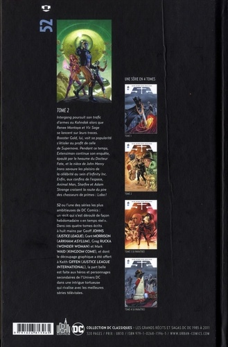 Intergang poursuit son trafic d'armes au Kahndak alors que Renee Montoya et Vic Sage se lancent sur leurs traces. Booster Gold, lui, voit sa popularité s'étioler au profit de celle de Supernova. Pendant ce temps, Extensiman continue son enquête, épaulé par le heaume du Docteur Fate, et la nièce de John Henry Irons savoure les plaisirs de la célébrité au sein d'Infinity Inc. Enfin, aux confins de l'espace, Animal Man, Starfire et Adam Strange croisent la route du pire des chasseurs de primes : Lobo !