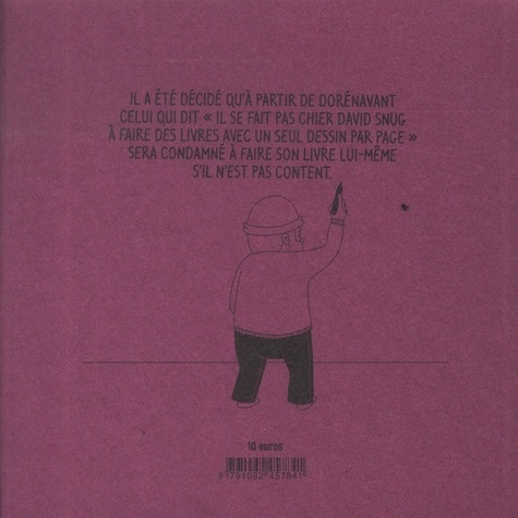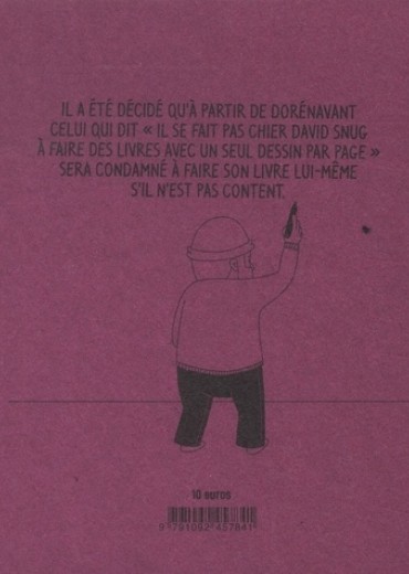 Il a été décidé qu'à partir de dorénavant celui qui dit "il se fait pas chier David Snuf à faire des livres avec un seul dessin par page" sera condamné à faire son livre lui-même s'il n'est pas content.