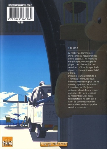 Le métier de Harehito et Ôjirô consiste à récupérer des objets cassés. Si les mains de Harehito peuvent retaper la plupart des choses, il en est certaines qu'il est incapable de réparer... comme le coeur brisé d'Ôjirô. Depuis le jour où Harehito a "ramassé" Ôjirô, les deux hommes ne se sont plus jamais quittés, arpentant les routes à la recherche d'objets à restaurer afin de leur accorder une nouvelle vie. Si les jours se ressemblent, les deux récupérateurs ne sont pas à l'abri de quelques surprises susceptibles de leur rappeler certains souvenirs...