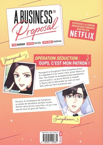 Opération séduction : oups, c'est mon patron ! Yeongsuh et Sunghoon filent le parfait amour et s'apprêtent à se marier mais, entre Taemu et Hari, les choses ne se passent pas exactement comme prévu. La jeune femme a interdit à Taemu de lui demander sa main et veut être celle qui fera le premier pas. De plus, le remplaçant de Sunghoon au poste de secrétaire semble vouloir devenir plus qu'ami avec Hari, ce qui n'est pas du tout au goût de Taemu...
