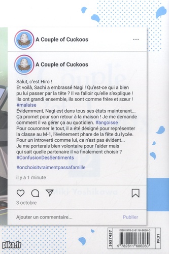 Salut, c'est Hiro ! Et voilà, Sachi a embrassé Nagi ! Qu'est-ce qui a bien pu lui passer par la tête ? Il va falloir qu'elle s'explique ! Ils ont grandi ensemble, ils sont comme frère et soeur ! #malaise Evidemment, Nagi est dans tous ses états maintenant... Ca promet pour son retour à la maison ! Je me demande comment il va gérer ça au quotidien. #angoisse Pour couronner le tout, il a été désigné pour représenter la classe au M-1, l'événement phare de la fête du lycée. Pour un introverti comme lui, ce n'est pas évident... Je me porterais bien volontaire pour l'aider mais qui sait quelle partenaire il va finalement choisir ? #ConfusionDesSentiments